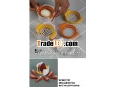 No matter how you sliceit, this utensil is a terrific timesaver. It comes withthree cutters with stainless steel wires for creating slices,wedges and halves. Just place a hardboiled egg inside and gentlypress the handles. Taut wires glide smoothly through the egg foreven slices – and not a crumb left behind. Faster, easier and moreprecise than knives. Nonskid base holds it in place. Also makesclean work of strawberries, mushrooms and other softfoods.